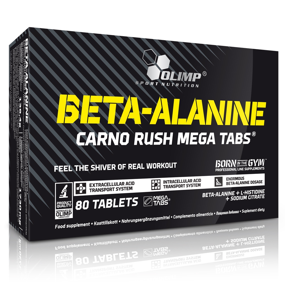 Olimp Sport Nutrition Beta-Alanin Carno Rush - Packung á 80 Tabletten. Olimp Beta-Alanin Carno Rush versorgt Sie mit hochwertigem Beta-Alanin. Pro Tablette sind unglaubliche 1000 Milligramm reines Beta-Alanin und 50 Milligramm L-Histidin enthalten. Zusätzlich sind der Kapsel noch weitere 0,35 Milligramm Vitamin B6 zugefügt. Olimp hat sich auch bei Olimp Beta-Alanin Carno Rush wieder für die XXL-Tabletten entschieden, welche natürlich für eine einfache Einnahme sprechen. Die Tabletten werden einfach mit Wasser verzehrt, womit eine aufwendige Zubereitung wegfällt.