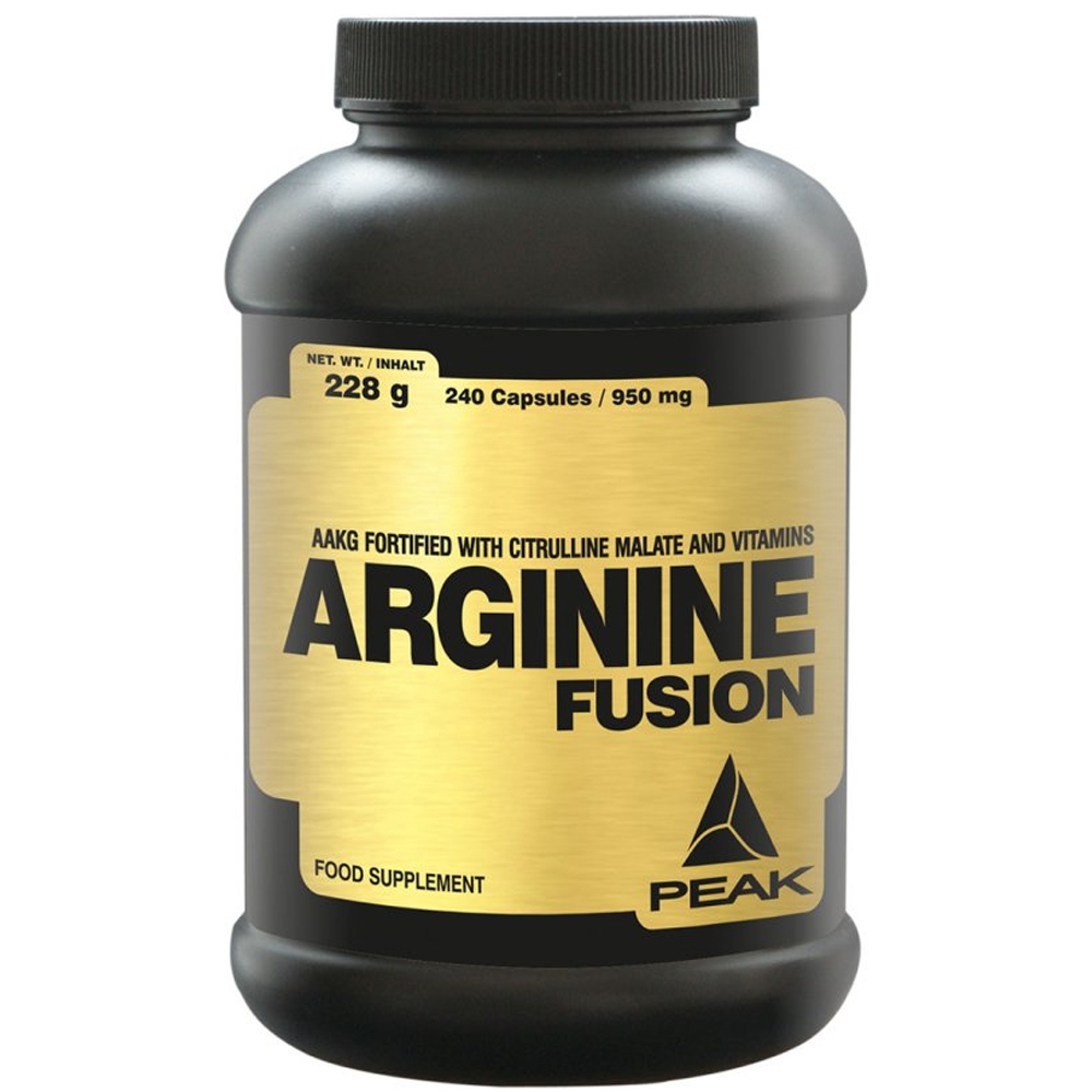 Peak Arginin Fusion - Dose á 240 Kapseln. Arginin Fusion ist eine Matrix aus besonders bioverfügbaren Verbindungen der Aminosäure L-Arginin sowie synergetischen Co-Substraten. Arginin ist eine wichtigen Aminosäure (semiessentiell), die u.a. als (alleiniger) Präkursor von Nitric Oxide agiert.