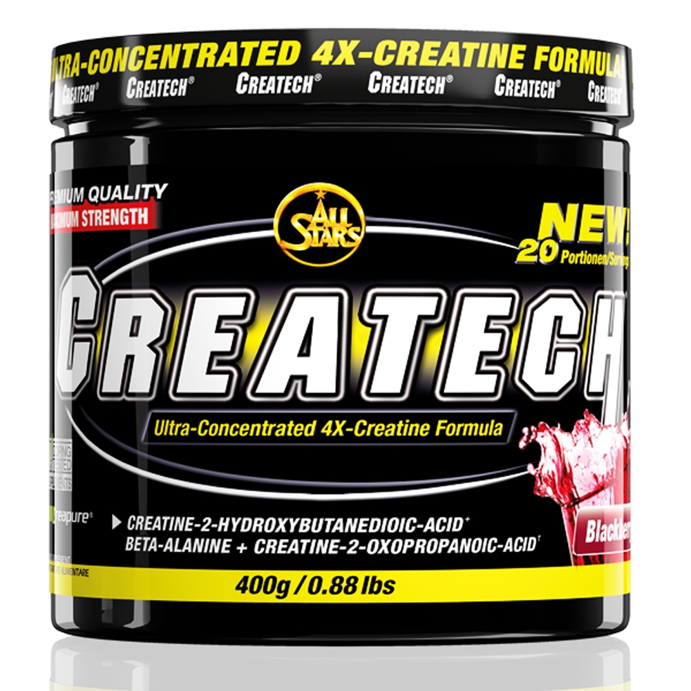 All Stars Createch - Dose á 400 Gramm. All Stars Createch ist ein hochkonzentrierte Creatin-Formel in der klassischen Pulverform. Pro Tagesportion (20 Gramm Pulver) sind 5 Gramm Creatin, 3 Gramm Beta-Alanin, 0,5 Gramm Taurin und vieles mehr enthalten. Zusätzlich sind All Stars Createch noch hochwertige Vitamine zugesetzt.