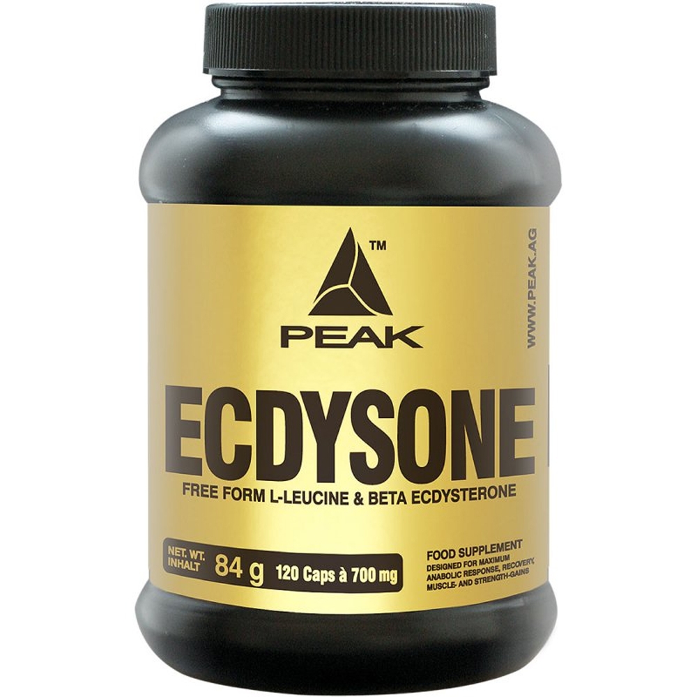 Peak Beta Ecdysone - Dose á 120 Kapseln. Peak Ecdysone versorgt Sie mit den bekannten Beta Ecdysteronen und der Aminosäure L-Leucin. Ecdysone ist ein ergogenes Supplement auf Basis von den verzweigtkettigen Aminosäure L-Leucin (BCAA) und Spinat Extrakt, welcher besonders reich an Beta Ecdysteron ist.