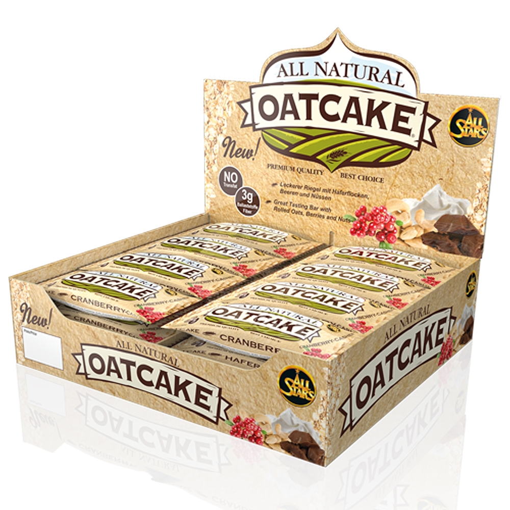 All Stars All Natural Oatcake - Riegel á 80 Gramm. Mit dem All Stars All Natural Oatcake erhalten Sie nicht nur einen wirklich leckeren Haferrigel, der Sie neben 52,0 Gramm Kohlenhydraten noch zusätzlich mit 5,8 Gramm Protein pro Riegel (80 Gramm) versorgt.