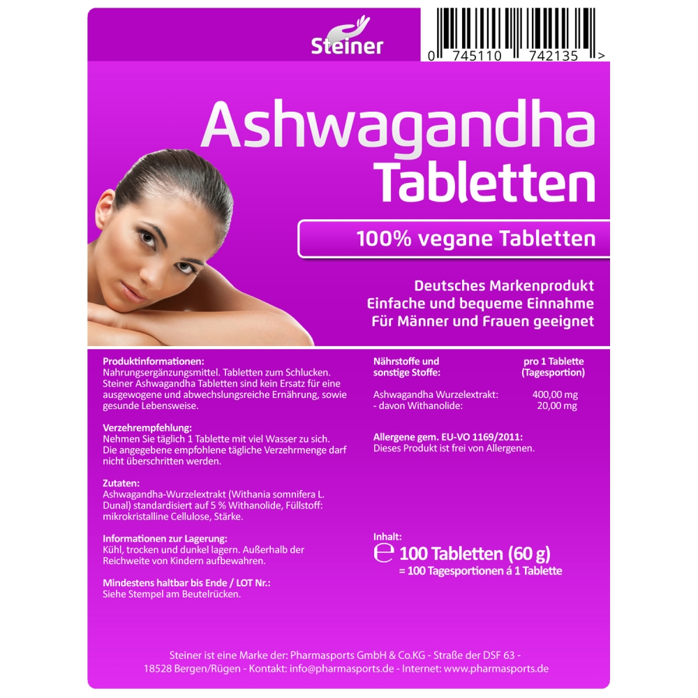 - 400 mg Ashwagandha Extrakt 5% Withanolide pro Tablette