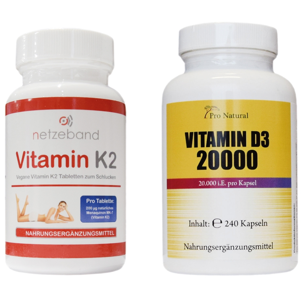 Vitamin K2 Menaquinon MK7 200µg + Vitamin D3 gut im Set