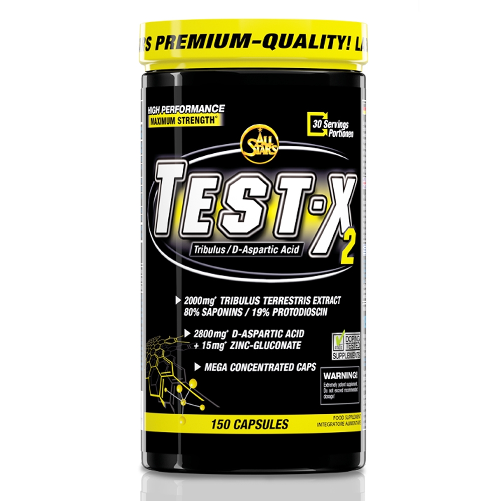 All Stars Test-X2 - Dose á 150 Kapseln. All Stars Test-X2 ist die effektive Kombination aus Tribulus Terrestris Extrakt, D-Asparaginsäure, sowie Zinkgluconat.