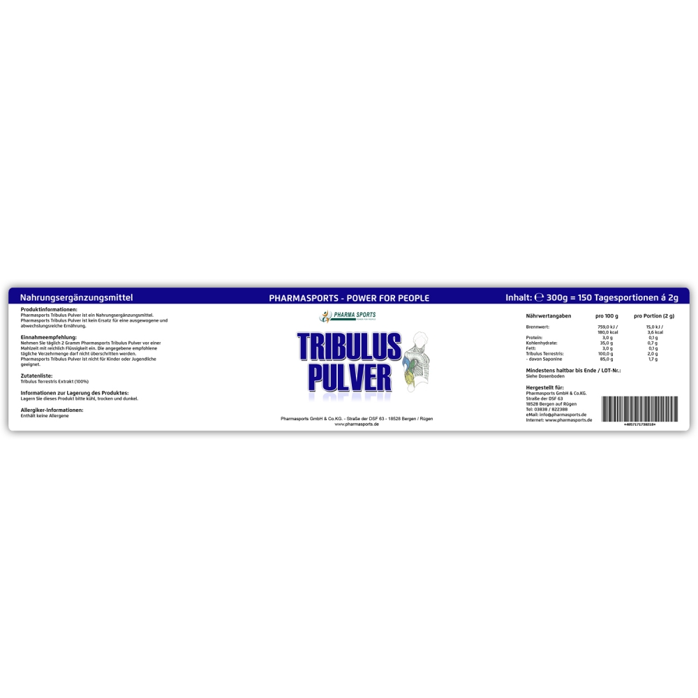 Pharmasports Tribulus Pulver - Dose á 300 Gramm. Wie es der Name bei diesem Produkt bereits verrät, versorgt Pharmasports Tribulus Pulver Sie mit 100% reinem Tribulus Pulver, ganz ohne Zusätze wie Farb- oder Geschmacksstoffe.