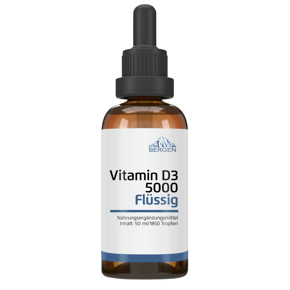 Bergen Vitamin D3 Flüssig ist Ihre Quelle für wertvolles Vitamin D3 (Cholecalciferol) in der einfachen und bequemen Tropfenform. Mittels einer Pipette kann das Produkt möglichst genau dosiert werden. Geliefert wird Bergen Vitamin D3 Flüssig in einer wiederverschließbaren Glasflasche mit einem Inhalt von 50 ml (Milliliter), welcher 1850 Tropfen entspricht.