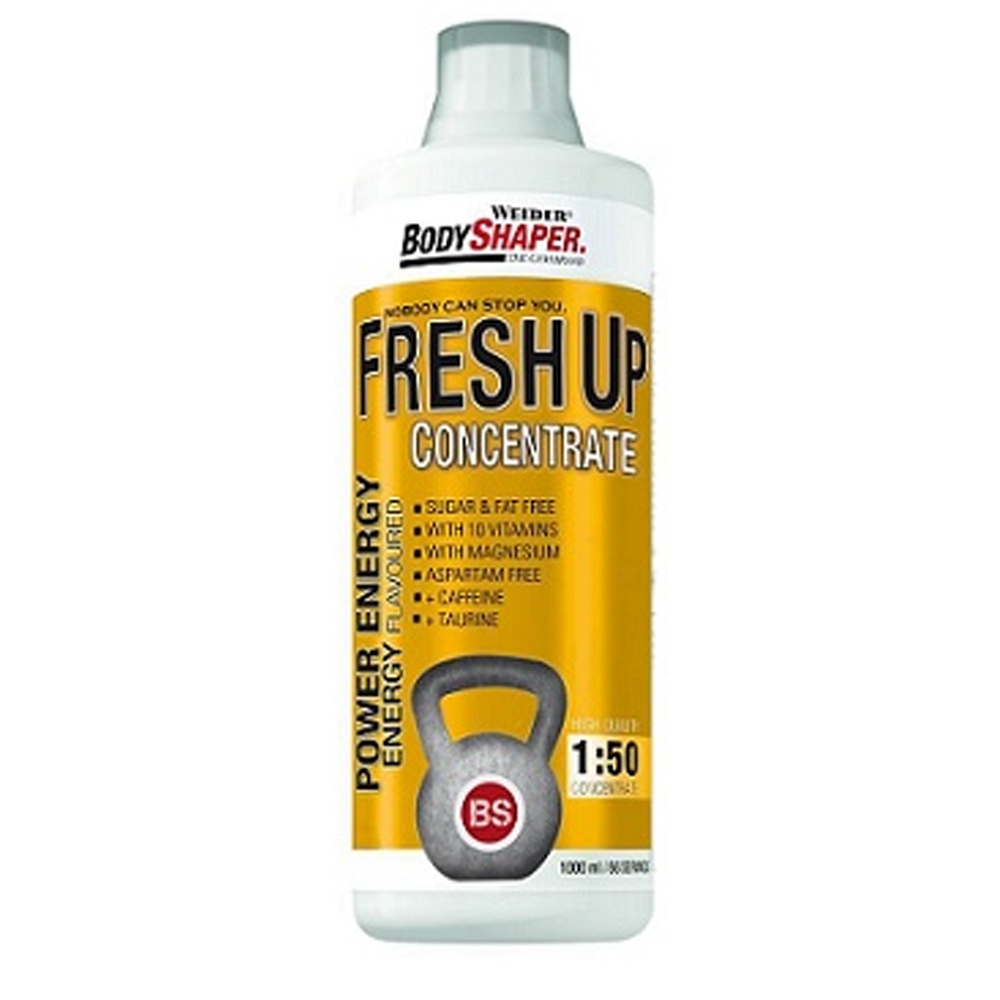 Weider Body Shaper Fresh-Up Concentrate - Flasche á 1000 ml. Weider Body Shaper Fresh-Up Concentrate ist ein Getränkekonzentrat zur Herstellung eines kalorienarmen Durstlöschers mit Vitaminen, sowie Mineralstoffen. Ein Liter des Weider Body Shaper Fresh Up Concentrate reicht für 50 Liter Mix-Getränk. Gemixt wird das Konzentrat ganz einfach mit Wasser. Weider Body Shaper Fresh-Up Concentrate enthält kein Zucker oder Aspartam. 1 Liter Flasche Weider Body Shaper Fresh-Up Concentrate ist ein 1:50 Konzentrat mit vielen Vitaminen und Mineralstoffen (Vitamin E, Vitamin C, Vitamin B1, Vitamin B2, Niacin, Vitamin B6, Folsäure, VItamin B12, Biotin, Pantothensäure, Magnesium), zur schnellen Herstellung eines kalorienarmen Durstlöschers.