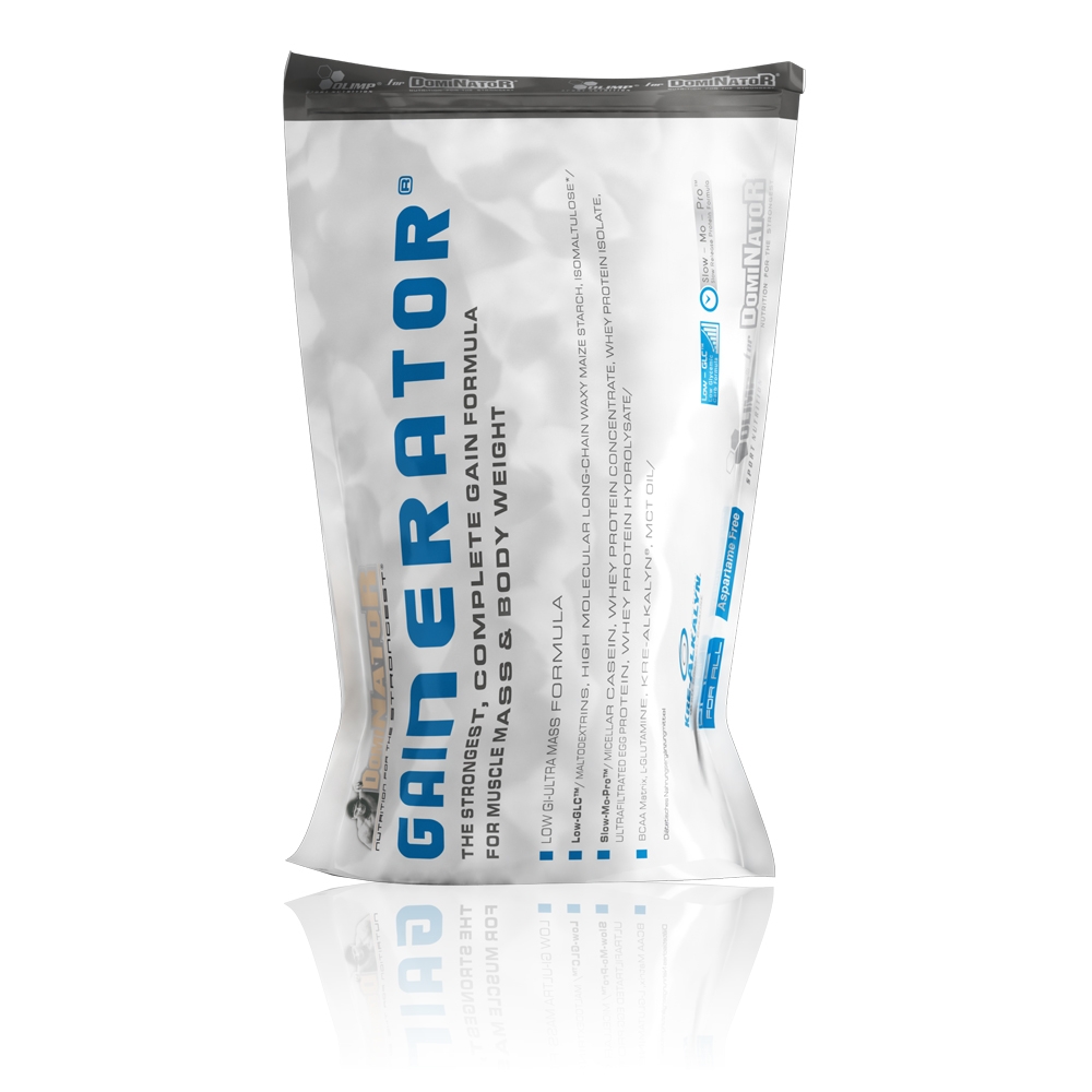 Olimp Dominator Gainerator - Standbeutel á 900 Gramm. Olimp Sports Dominator Gainerator ist ein neuer Weight Gainer, welcher sich mit hochwertigen Proteinen, wie natürlich auch hochwertigen Kohlenhydraten plus Kre-Alaklyn Creatin präsentiert. Olimp Dominator Gainerator ist eine hochwertige und perfekt abgestimmte Kombination aus 70% Kohlenhydraten (Maltodextrin, Maisstärke und viele mehr), sowie BCAAs, L-Glutamin und das beliebte gepufferte Creatin Monohydrat (Kre-Alkalyn). Zu den Kohlenhydraten Dominator Gainerator enthält eine Low Glycemic Carb Formula Mischung aus Poly- und Oligosaccharyde, langkettige, wachsartige Maisstärke Waxy Maize und Isomaltulose, eine Zusammenstellung aus Kohlenhydraten mit niedrigem Glykämie-Index.